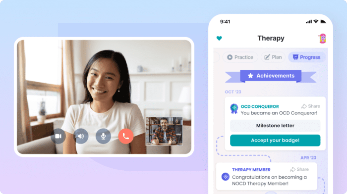 NOCD Therapists are also tapped into a broader support network of their own peers. This means that therapists can join weekly group office hours, attend live guest lectures by top OCD experts, and participate in group Q&A sessions.