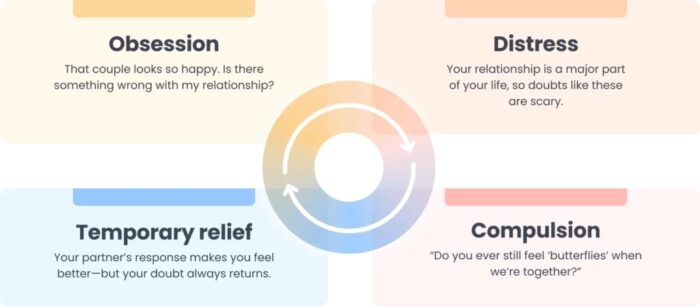 Because OCD often targets a person’s core values and fears, their intrusive thoughts and compulsions may center around what matters most to them, such as their relationships.